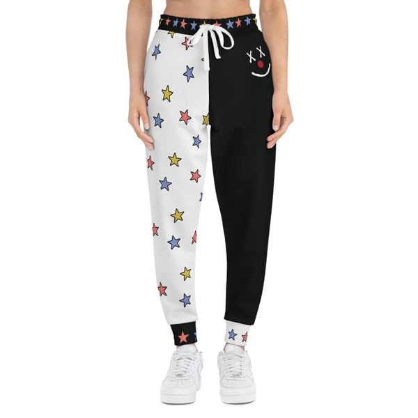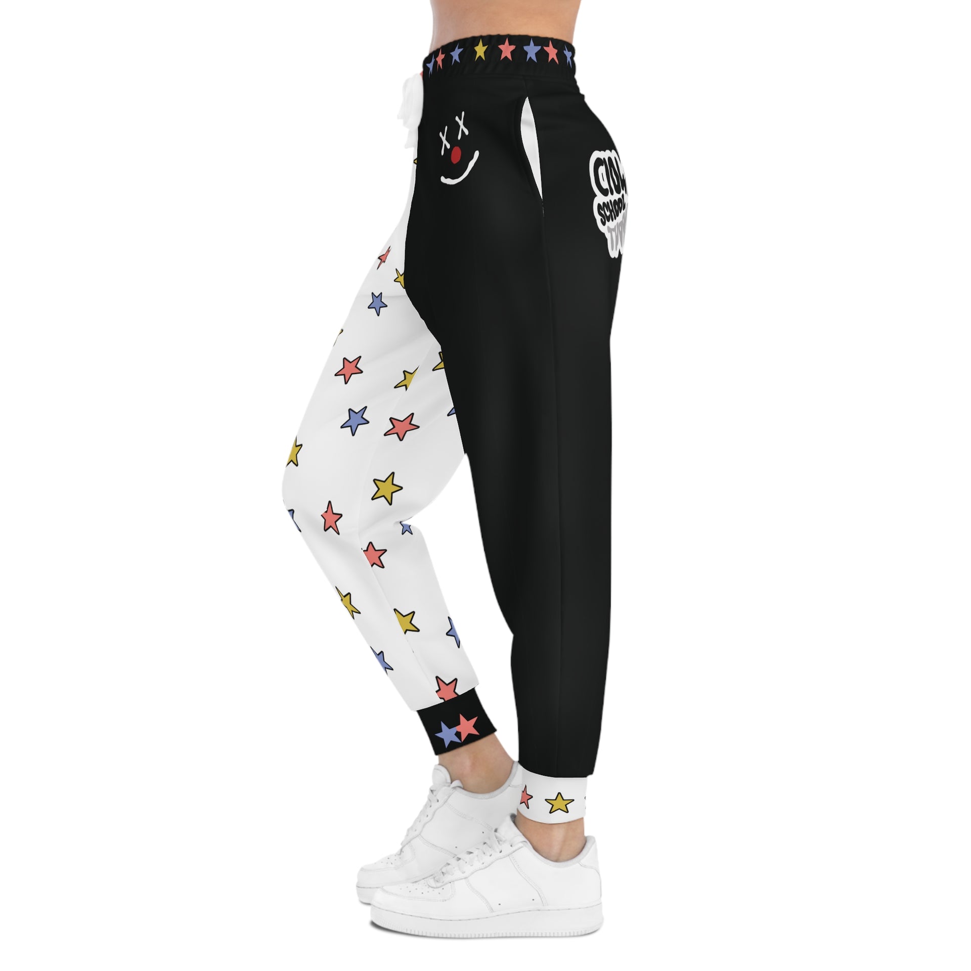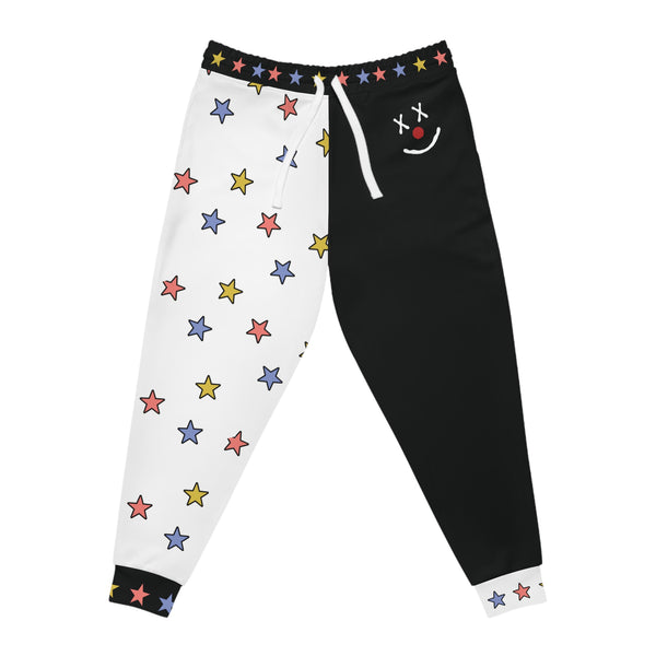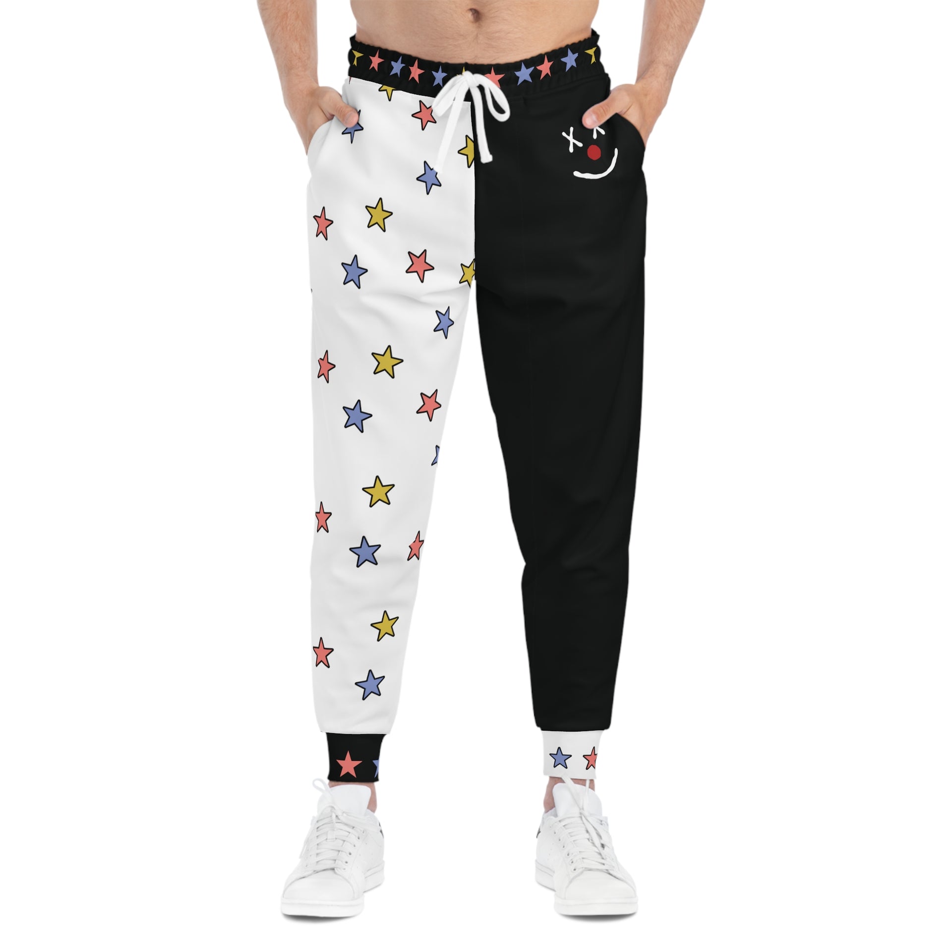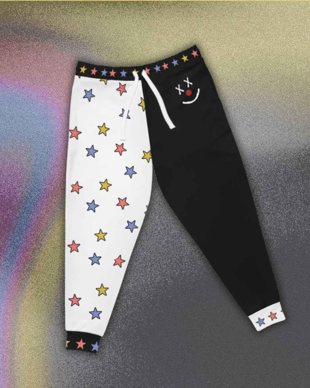 Slide into comfort with a splash of chaos — these joggers are made for clowning around and looking good while doing it. With a vibrant star print and duo-tone vibe, they’re equal parts circus and streetwear. Whether you're stretching, strutting, or straight-up skipping class, these joggers are the main event.